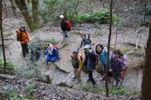 多度山には登山コースが3コースあるのですが今回は登りで初の 「健脚コース」 に挑戦しました。3コース中で一番急斜面を登る過酷なコース。弱音を漏らす子もいましたが、皆無事に登りきりました。