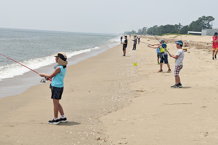 道具の使い方を覚えて、遠くへ投げる練習をしてから釣りをしました。