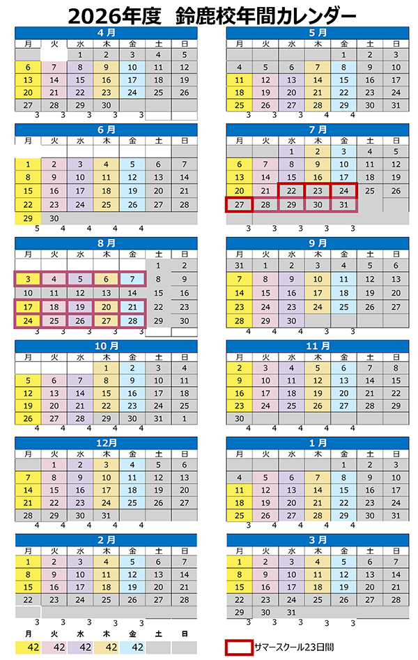 2026年度 鈴鹿校年間カレンダー ver.2026.01